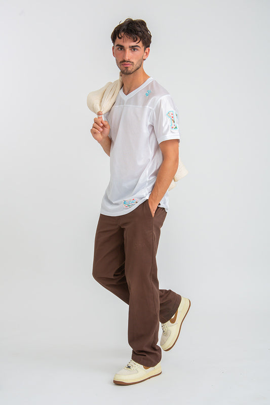 Unsere Jerseys sind keine klassischen Sporttrikots. Wir wollten Pieces erschaffen, die man auf Events, in der Stadt oder in besonderen Momenten tragen kann. Clean, modern, tragbar – und doch individuell. Mode, die dich erinnert, nicht nur zu funktionieren, sondern zu genießen.